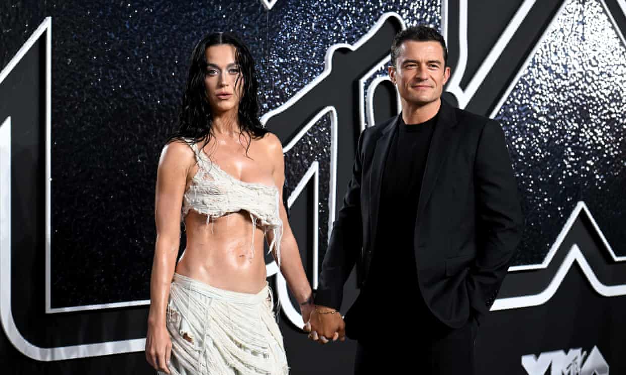| Katy Perry and Orlando Bloom on the black carpet before the ceremony. |